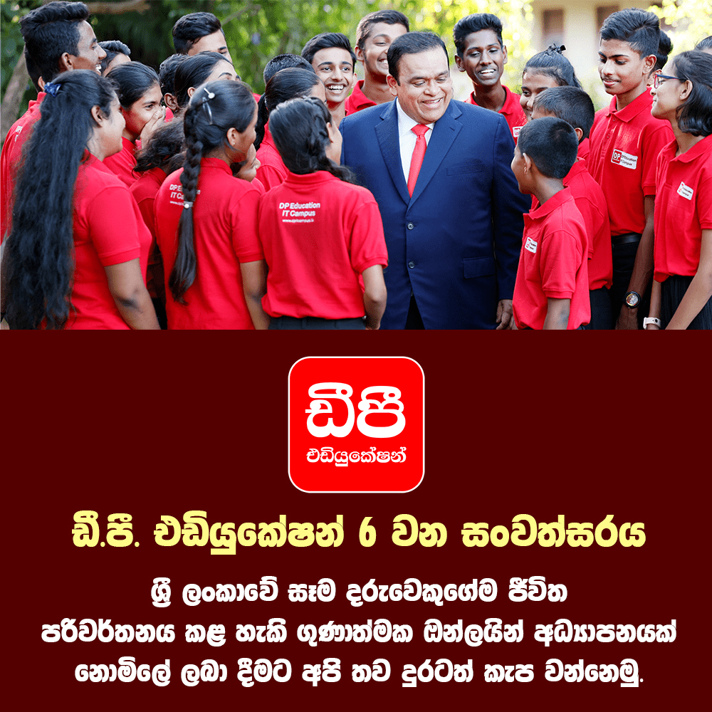 ඩීපී එඩියුකේෂන් අපි, සය වසරක් වූ අධ්යාපනික මෙහෙවර සමරණ මේ සුවිශේෂී දිනයේදී, සෑම සිසුවෙක්ටම ගුණාත්මක අධ්යාපනයක් ලබාදීමේ මහඟු කාර්යභාර්යය පෙරදැරිව මේතාක් ගමන් කළ මග අපි ඉතා ආඩම්බරයෙන් සිහිකරන්නෙමු.