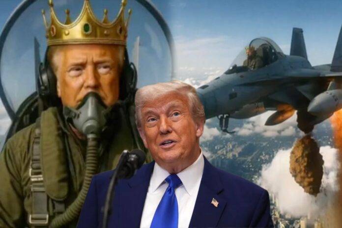 ඇමරිකානුවන් මිලියන ගණනක් තම රජයේ ප්රතිපත්තිවලට එරෙහිව “King Trump” විරෝධතාවල යෙදෙන අතරතුර, “King Trump” යන වාක්ය ඛණ්ඩය සහිත ප්රහාරක ජෙට් යානයක නැගී සිටින ට්රම්ප් ගේ මෙම වීඩියෝව ඔහු තම සමාජ මාධ්ය ගිණුම ඔස්සේ පළ කළේ, ඌරාගේ මාළු ඌරාගේම ඇගේ තියා කපන විලාසයෙනි.