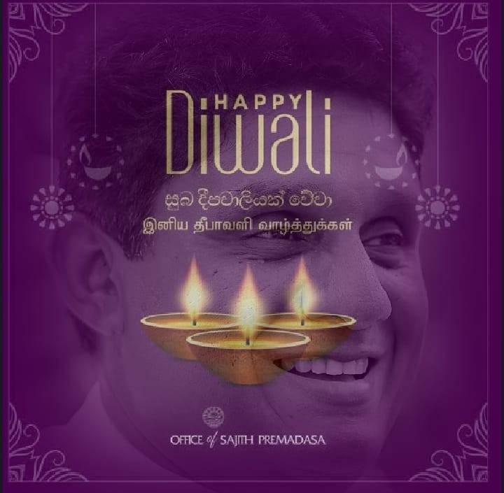 “මේ දිපාවලි දිනයේ දී අප කළ යුත්තේ නපුර පරාජය කොට යහපත උදාව ආලෝකමත් කිරීම යි” දීපාවලි දින පණිවිඩයක් නිකුත් කරමින් විපක්ෂ නායක සජිත් ප්රේමදාස මහතා පවසයි.