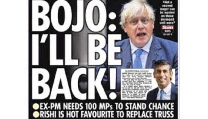 මේ වන විට බ්රිතාන්යයේ දේශපාලන පිටිය ගිනිගනිමින් පවතින බව වාර්තා වෙනවා. ඒ අන් කවරක් නිසා නෙවෙයි, බ්රිතාන්ය අග්රාමාත්ය ලිස් ට්රස් මහත්මිය ඉල්ලා අස්වන බවට පළවන පුවත් සහ හිටපු අග්රාමාත්ය බොරිස් ජොන්සන් යළි ධුරය භාර ගැනීමට සූදානම් බවට පළවන පුවත් සිරස්තල නිසා.