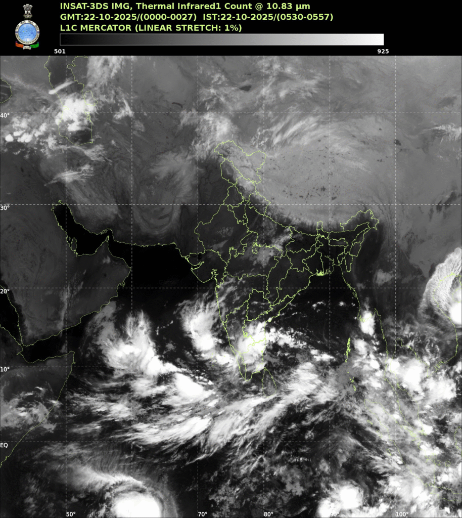 එම පද්ධතිය අද (ඔක්තෝබර් 22) දින සවස් කාලයේදී උතුරු තමිල්නාඩු සහ දකුණු අන්ද්රා ප්රදේශ වෙරළ ආසන්නයේදී පීඩන අවපාතයක් දක්වා වර්ධනය වනු ඇතැයි බලාපොරොත්තුවේ.