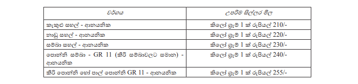 2025 ඔක්තෝබර් 21 වනදා සිට බලපැවැත්වෙන පරිදි මෙම මිල නියම කිරීම සිදුකර ඇති බවයි ගැසට් නිවේදනයෙහි දැක්වෙන්නේ.
