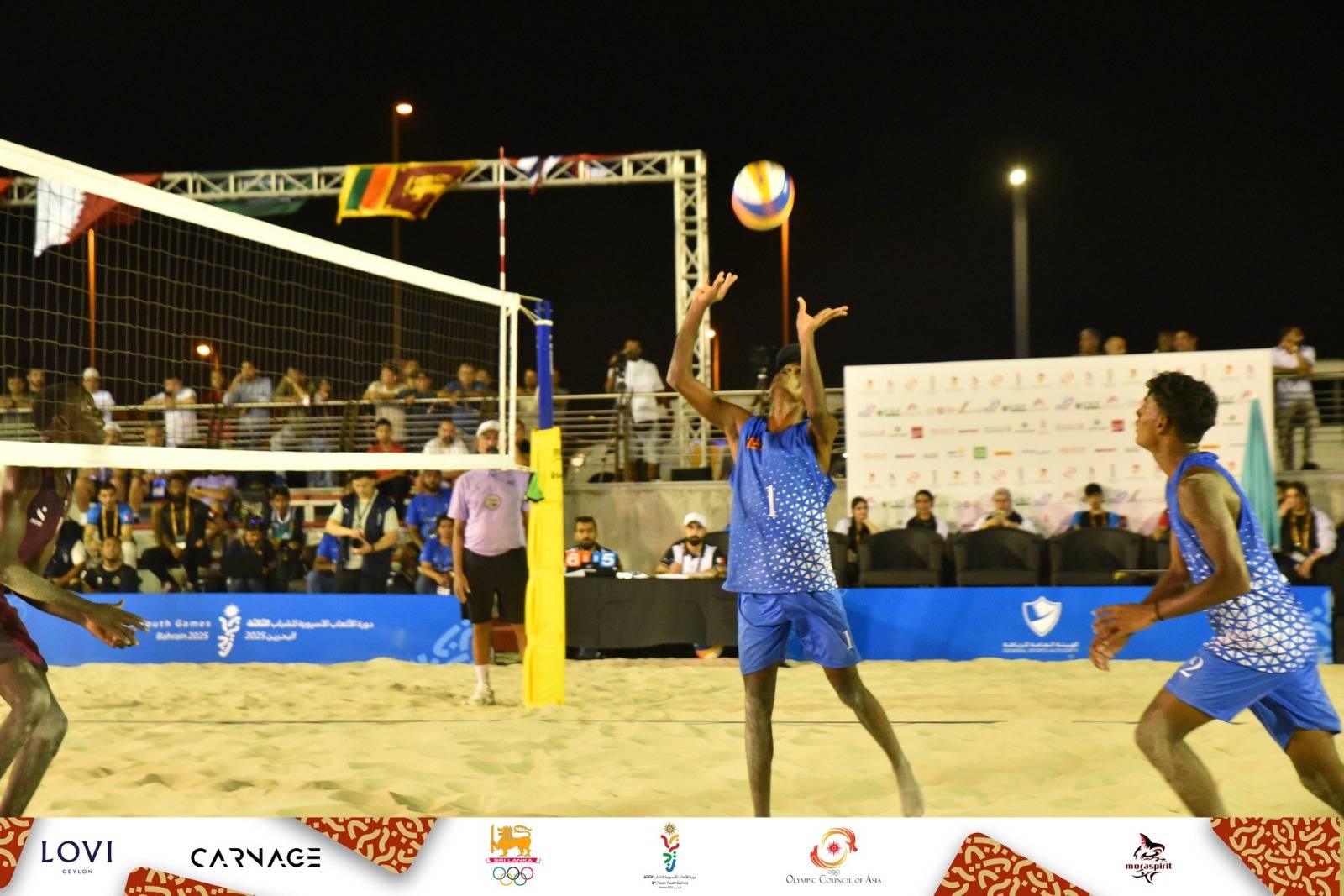 බහරේනයේ පැවත්වෙන ආසියාතික යොවුන් ක්රීඩා සූරතාවලියේ දී ශ්රී ලංකාව නියෝජනය කරන බාලක වෙරළ වොලිබෝල් කණ්ඩායම 21 වන දින ජයග්රාහීව නිමා කරන්නට සමත් වුණා.ශ්රී ලංකාව නියෝජනය කරන දිදුල මහිම සහ කුසල් දුල්මිණ තමන් සහභාගි වූ තරග දෙකම ජය ගන්නට සමත් වුණා.