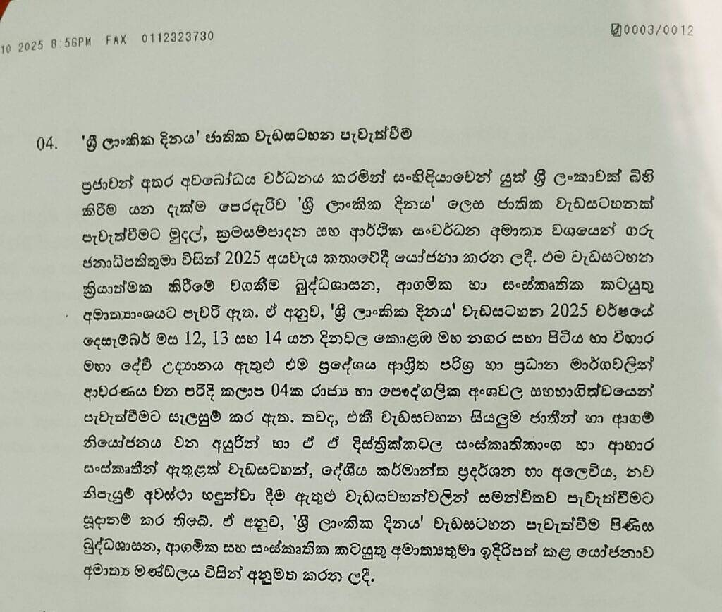 ප්රජාවන් අතර අවබෝධය වර්ධනය කරමින් සංහිඳියාවෙන් යුත් ශ්රී ලංකාවක් බිහි කිරීම යන දැක්ම පෙර දැරිව 2025 අයවැය කතාවේදී මුදල්, ක්රමසම්පාදන සහ ආර්ථික සංවර්ධන අමාත්ය වශයෙන් ජනාධිපතිවරයා විසින් යෝජනා කළ , ශ්රී ලාංකික දිනය’ ලෙස ජාතික වැඩසටහනක් පැවැත්වීමට කළ යෝජනාවට අමාත්ය මණ්ඩල අනුමැතිය හිමිව තිබේ.