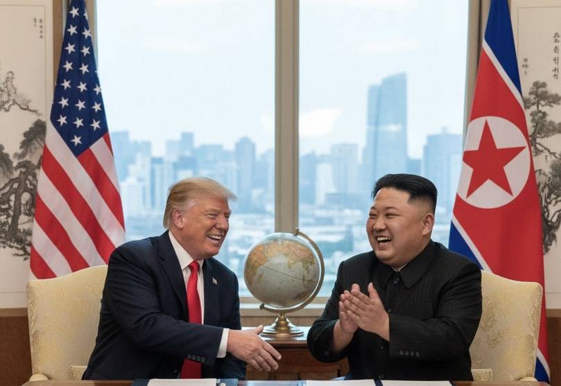 ට්රම්ප් සිය පළමු ධුර කාලය තුළ, 2019 දී අවසන් වරට කිම් ජොන් උන් සමඟ අතට අත දුන් සහ උතුරු කොරියාවට පා තැබූ පළමු එක්සත් ජනපද ජනාධිපතිවරයා බවට පත්විය.