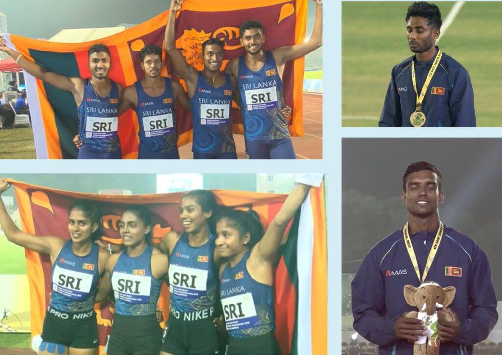 යෝධසිංහට සහය දිවීමේ රන් පදක්කම සඳහා සඳුන් දියලවත්ත,ඉඳුසර විදූෂ සහ ප්රමුදිත සිල්වා දායක වූහ.සෆියා යමීක්,අමාශා ද සිල්වා,ධනංජනා ප්රනාන්දු සහ රුමේෂිකා රත්නායක එක්ව කාන්තා මීටර් 100 සහය දිවීමේ රන් පදක්කම ශ්රී ලංකාවට දිනා දුන්හ.ඒ අනුව මෙවර දකුණු ආසියානු මලල ක්රීඩා සූරතාවලිය ඉතිහාසයට එක්වන්නේ මීටර් 100 ඉසව්වේ සියළු ගෞරවයන් ශී ලංකාවට අත් කර දුන් තරගාවලියක් හැටියටය.