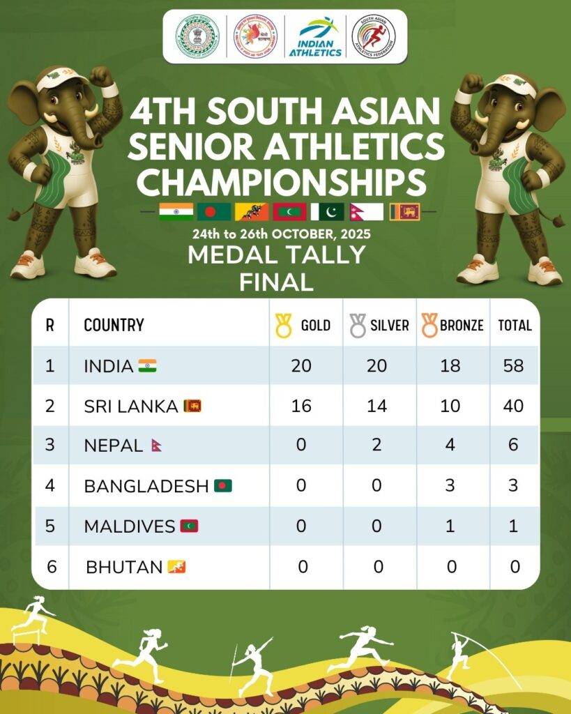 තරගාවලියේ පිරිමි අංශයේ දක්ෂතම මලල ක්රීඩකයා බවට පත්වන්නේ රුමේෂ් තරංගයි.ඔහු හෙල්ල වීසි කිරීමේ ඉසව්වේදී දක්වන මීටර් 84.29 සඳහා ලකුණු 1260 ක ලකුණු ප්රමාණයක් හිමි වෙනවා.කාන්තා අංශයේදී මීටර් 100 ඉසව්වට සාෆියා දක්වන තත්පර 10.53 සඳහා ලකුණු 1087 ක් හිමි වුණත්,කාන්තා මීටර් 5000 ඉසව්ව ජයගත් සංජනා සිං වාර්තා කළ විනාඩි 15:38.70 ක කාලයට ලකුණු 1090 ක් හිමි වීම නිසා දක්ෂතම ක්රීඩිකාව වීමේ අවස්ථාව සාෆියාට අහිමිව සංජනාට හිමි වෙනවා.