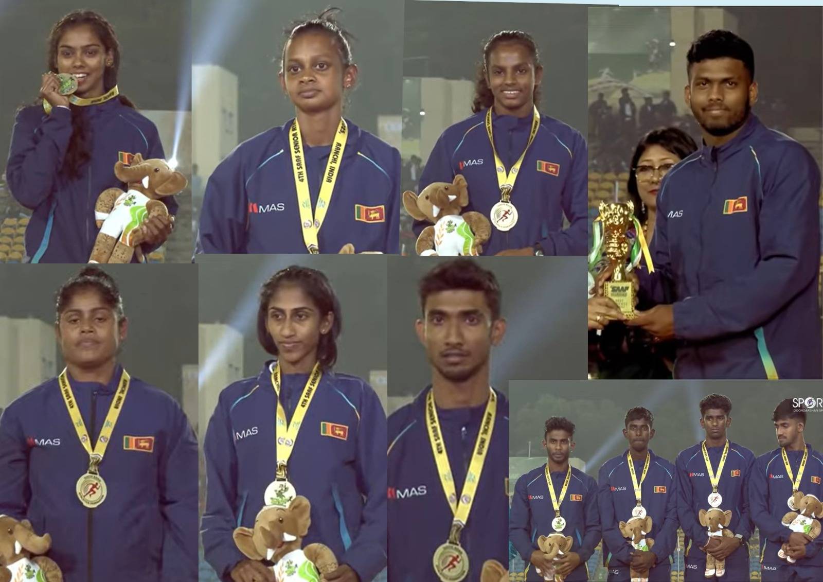 ඒ අතරින් ශ්රී ලංකාව දිනා ගත් රන් පදක්කම් 16 න් තුනකට දායක වෙන්නට සාෆියා යාමින් සමත් වෙනවා.මධුෂානි හේරත් දුර පැනීම සහ තුන් පිම්ම යන ඉසව් ද්විත්වයේම රන් පදක්කම් ශ්රී ලංකාවට දිනා දෙනවා.කාලිංග කුමාරගේ මීටර් 400 සහ 400 පිරිමි සහට දිවීමේ රන් පදක්කම් දෙකටම හිමිකම් කියන අතර ඔහුට මීටර් 400 මිශ්ර සහය තරගයේ රිදී පදක්කමට ද දායකත්වය තිබෙනවා.