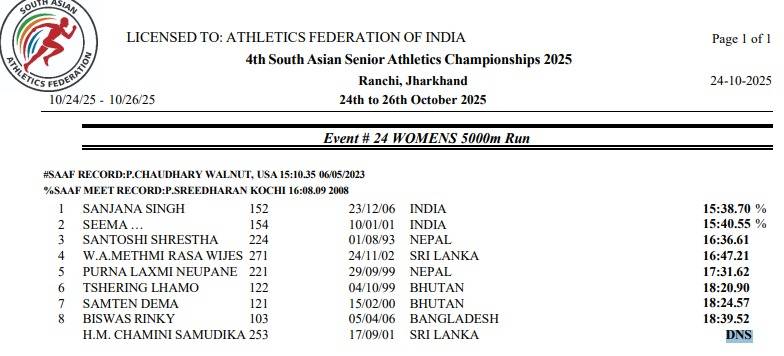 කෙසේ වුව මේ වීසා ගැටළුව නිසා තරගාවලියට සහභාගි නොවන්නේ මිටර් 5000 ඉසව්ව නියෝජනය කරන්නට සිටි චාමිනි හේරත් පමණි.එම ඉසව්වේ ප්රතිපල ලේඛණය මෙහි ඇත.එහි DNS ලෙස ඇත්තේ ඇය ඉසව්ව ආරම්භ කිරීමට නෙැපැමිණි බැවිනි.සහභාගි නොවූයේ ඇය තරගයට එක්වීමට ප්රමාණවත් කාලයක් ඇතුව වීසා නොලැබීම නිසාය.චාමිනි එහිදී පදක්කමක් දිනා ගනීවිද නැද්ද යන්න ගැන අපි කිසිත් නොකියන්නෙමු.හැබැයි ඇයට අත හැරුනේ ශ්රී ලංකාවේදී එම ඉසව්ව තුළ ලබා ගන්නට නොහැකි අන්දමේ අත්දැකීමක්ය.එම ඉසව්ව ජයගත් සංජනා සිං දක්ෂතම ක්රීඩිකාව වීමෙන් එම තරගය ක්රියාත්මක වූ වේගය ගැන ඔබට පැහැදිළි අවබෝධයක් ලැබෙනවා ඇත.