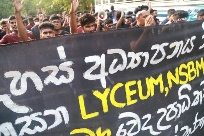 කොළඹ (LNW): “හොර උපාධි කඩ ගෙන ඒමේ ආණ්ඩුවේ කුමන්ත්රණය පරදවමු” යන මැයෙන් වෛද්ය පීඨ ශිෂ්ය ක්රියාකාරී කමිටුව අද (27) සංවිධාන කළ විරෝධතා පාගමනකට පොලිසිය අවස්ථා දෙකක දී ජල සහ කඳුළු ගෑස් ප්රහාර එල්ල කළ අතර ,එහි දී එම කමිටුවේ කැඳවුම්කරු ඇතුළු සිසුන් කිහිප දෙනෙකු පොලිසිය විසින් අත්අඩංගුවට ගෙන ඇත.