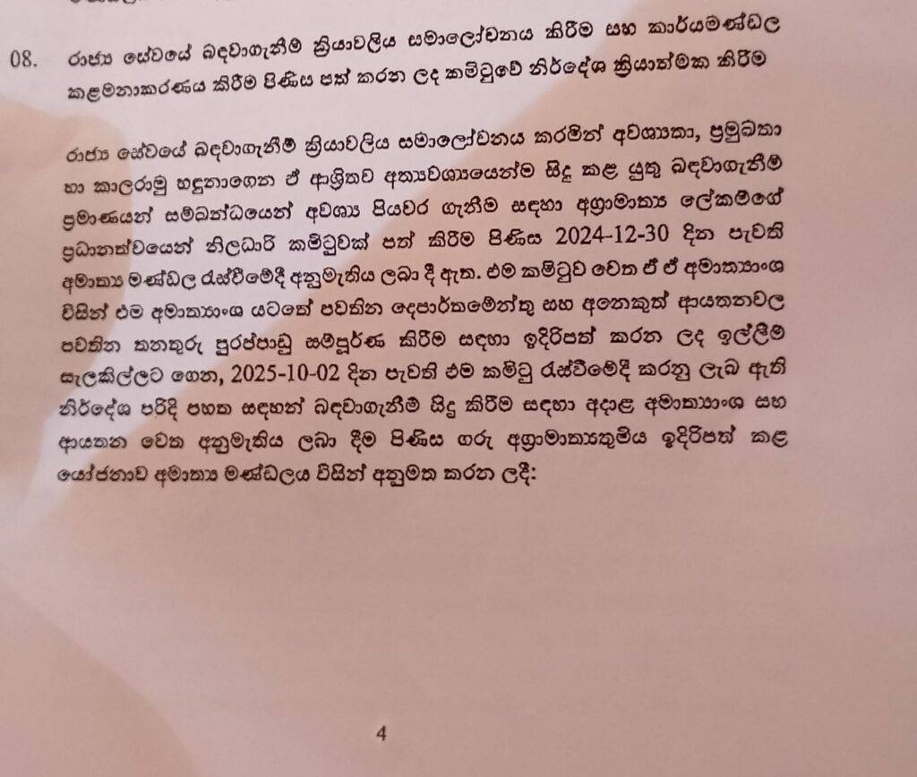 රාජ්‍ය සේවයේ බඳවා ගැනීම් ක්‍රියාවලිය සමාලෝචනය කිරීම සහ කාර්යමණ්ඩල කළමනාකරණය කිරීම ගැන කැබිනට් තීරණයක්!