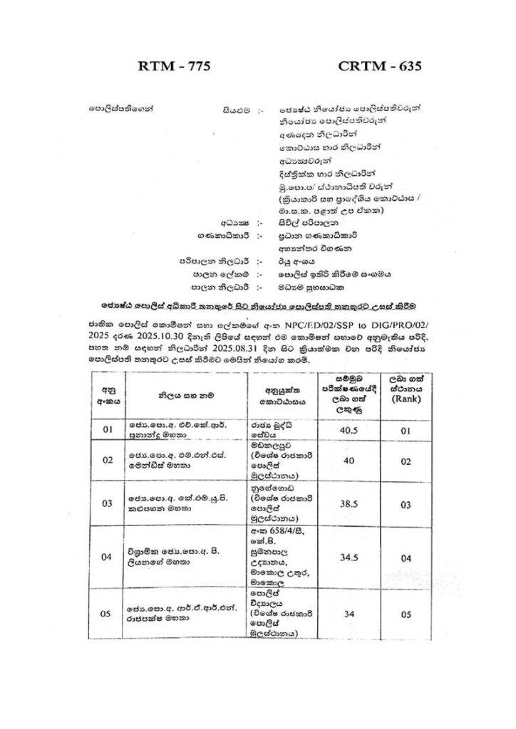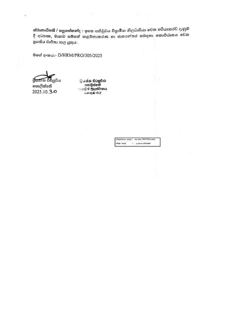 Uncategorized පොලිස් තනතුරු කිහිපයක් ගැන තීරණයක්! Date: October 30, 2025 රෂිකා හෙන්නායක ඔක්තෝබර් 30 කොළඹ LNW: ජ්යෙෂ්ඨ පොලිස් අධිකාරීවරුන් පස් දෙනෙකු නියෝජ්ය පොලිස්පති තනතුර සඳහා උසස් කර ඇත. එම උසස් වීම් ලද උසස් පොලිස් නිලධාරීන්ගේ ලේකනය පහත දක්වා තිබේ. Previous articleවිෂ මත්ද්රව්ය ගැන තොරතුරු දෙන්න ක්ෂණික ඇමතුම් අංකයක්Next articleසුරාබදු දෙපාර්තමේන්තුවේ මත්ද්රව්ය නාශක කාර්යාංශයේ නිලධාරීන් 05ක් CID අත්අඩංගුවට! Share post: FacebookTwitterPinterestWhatsApp Popular සිසු අරගලයේ පහන් තරුව ත්රිමා විතාන 37 වන සැමරුම! (PHOTOS) සුරාබදු දෙපාර්තමේන්තුවේ මත්ද්රව්ය නාශක කාර්යාංශයේ නිලධාරීන් 05ක් CID අත්අඩංගුවට! විෂ මත්ද්රව්ය ගැන තොරතුරු දෙන්න ක්ෂණික ඇමතුම් අංකයක් Alpha Fire හි නව සභාපතිවරයා ලෙස මේනක අතුකෝරල එක්වෙයි! LAUGFS Power, Futurity සමඟ අත්වැල් බැඳගනිමින් ප්රථම වරට AI-සක්රීය වාර්ෂික වාර්තාවක් එළිදක්වයි! More like thisRelated සිසු අරගලයේ පහන් තරුව ත්රිමා විතාන 37 වන සැමරුම! (PHOTOS) Radhika - October 30, 2025 කොළඹ LNW: ත්රිමා 37 වන සැමරුම අද (30) කොළඹ... සුරාබදු දෙපාර්තමේන්තුවේ මත්ද්රව්ය නාශක කාර්යාංශයේ නිලධාරීන් 05ක් CID අත්අඩංගුවට! Rashika Sandamali - October 30, 2025 ප්රකාශයක් ලබා දීම සඳහා පැමිණි අවස්ථාවේ , සුරාබදු දෙපාර්තමේන්තුවේ... විෂ මත්ද්රව්ය ගැන තොරතුරු දෙන්න ක්ෂණික ඇමතුම් අංකයක් RN - October 30, 2025 සටහන - රුවන් නෙළුගොල්ල විෂ මත්ද්රව්ය මුලිනුපුටා දැමීම සඳහා වන... Alpha Fire හි නව සභාපතිවරයා ලෙස මේනක අතුකෝරල එක්වෙයි! Rashika Sandamali - October 30, 2025 රෂිකා හෙන්නායක ඔක්තෝබර් 30, කොළඹ LNW : මේනක අතුකෝරල නව...