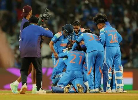 ජෙමීමා අපූරුවට කණ්ඩායම දරා උන්නාය.ඒ බර ඇය අත රඳවා ගනිමින් ප්රවේගකාරීත්වය අන් සාමාජිකයන් වෙත පවරා දුන්නාය.හර්මජිත්ගෙන් පසුව දීප්ති ෂර්මා හිස් තැන අපූරුවට පුරවමින් සිටියදී අලස දිවීමක ප්රතිපලයක් ලෙස දුවද්දී දැවී ගියද ඇය විසින් පන්දු 17 දී ලකුණු 24 ක් ලබා සිටියාය.සිව්වන කඩුල්ලේ සබඳතාවය 38 ක් විය.ඉනික්බිති රිචා ගෝස් පන්දු 16 න් ලැබූ ලකුණු 26 ය.පස්වන කඩුල්ලේ සබඳතාවය 46 ක් විය.දිප්ති සහ රිචා මෙන්ම මෛ් තරගාවලියේ ඉන්දියාව වටිනාකම දැනගත් තුන් ඉරියව් ක්රීඩිකාව අමන්ජෝට් කෝර් ද පන්දු 8 දී ලකුණු15 ක් ලබා ජයග්රහණය වාර්තා වන විට නොදැවී කඩුල්ලේ උන්නාය.ඇය සහ ජෙමීමා අතර නොබිඳි සබදතාවය ලකුණු 31 ක් විය.