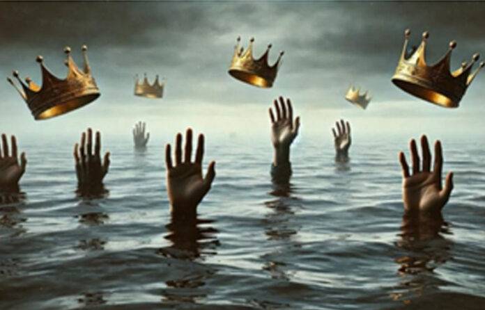 කළ කළ දේ පල පල දේමය. රජකම් කළත් කලකම් පලදෙන්නේමය. රැල්ල නැගෙනවිට රජකම්කල වූවන් රාජ සභාවද සමග රැල්ලට බිලිවන්නේය. ඔටුනු ගැලවී ගංගාවේ පාවීයන්නේය. ඔටුනු ගිලිහුනු රජතුන්කට්ටුවම ගංඟාවේ ගිලී පතුලබලා ගමන් ගන්නේය. දෛවයේ සරදමට ලක්වන මොවුන් නම් එසේ මෙසේ අයනම් නොවන්නේමය. දිය උඩින් සතුරු බව පෙන්වමින් දිය යටින් සැබෑවටම මිතුරුබව පෙන්වූ යසලාලකලාය. හොර රහසේම හොර ගිවිසුම් ගසා රට පාවා දුන්නාවූ පස්වන මිහිදුලාය. අර්බුද හමුවේ ජනතාවට විහිළු සැපැයූ සෙල්ලම් නිරිඳුලාය. මොවුන්ගේ ඔටුණු ගංගාවේ පාවී පහළට යන්නේය. මොවුන් ගංගාවේ ගිලී ගංගා පතුල කරා යන්නේය. ඒ යන ගමනේදී, පවා පාවෙන ඔටුනු දැක අනේ අනේ, සැපයි කියන්නේය. ඔටුනු සමග බැඳි තණ්හාවේ තරම නම් එයමය. “අනේ මෙහෙම තණ්හාවක් ය, අනේ මෙහෙම ආශාවක් ය”.