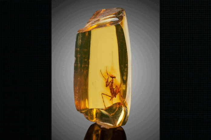 මෙන්න මේ වගේ ඇම්බර් ෆොසිලයක් ඇතුලෙ හිරවුනු වන්දාට වසර මිලියන තිහකට වඩා වයස බව කීවොත් පුදුම වියයුතු නෑ.