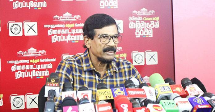 ඒ, අද (04) ජවිපෙ මූලස්ථානයේ පැවති මාධ්‍ය හමුවේදීය.