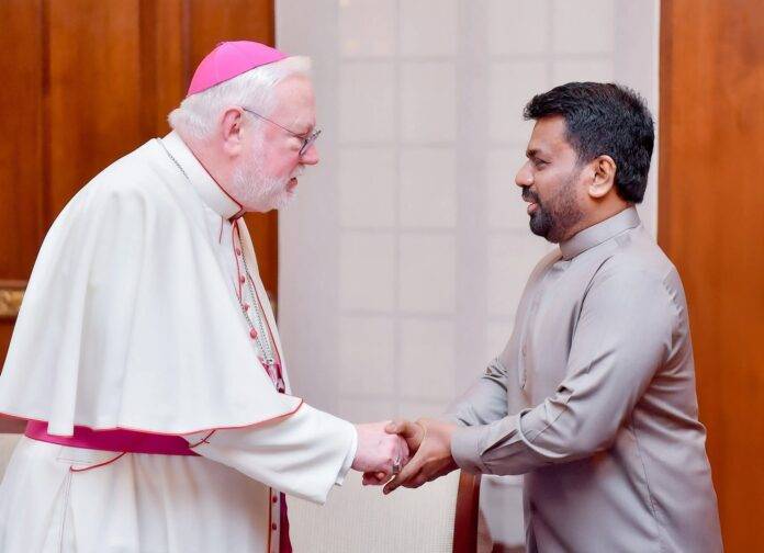 අද (04) පෙරවරුවේ , නිල සංචාරයක් සඳහා මෙරටට පැමිණි වතිකානුවේ රාජ්ය සහ ජාත්යන්තර සංවිධාන සබඳතා පිළිබඳ ලේකම්, අගරදගුරු පෝල් රිචඩ් ගැලගර් හිමිපාණන් ජනාධිපති ලේකම් කාර්යාලයේදී ජනාධිපති අනුර කුමාර දිසානායක මහතා හමුව ඇත.