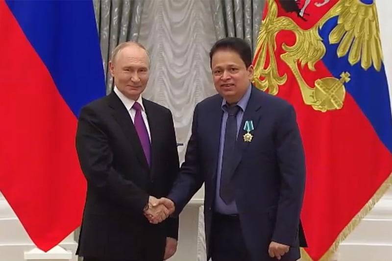 රුසියානු සමූහාණ්ඩුවේ ජනාධිපති ව්ලැඩ්මීර් පුටින් විසින් වෛද්‍ය සමන් රංජිත් වීරසිංහ වෙත ‘මිත්‍රත්වය සදහා වූ රුසියානු රාජ්‍ය සම්මානය – Russia’s Prestigious Order of Friendship) ඊයේ (නොවැම්බර් 04) දින පිරිනමනු ලැබීය.