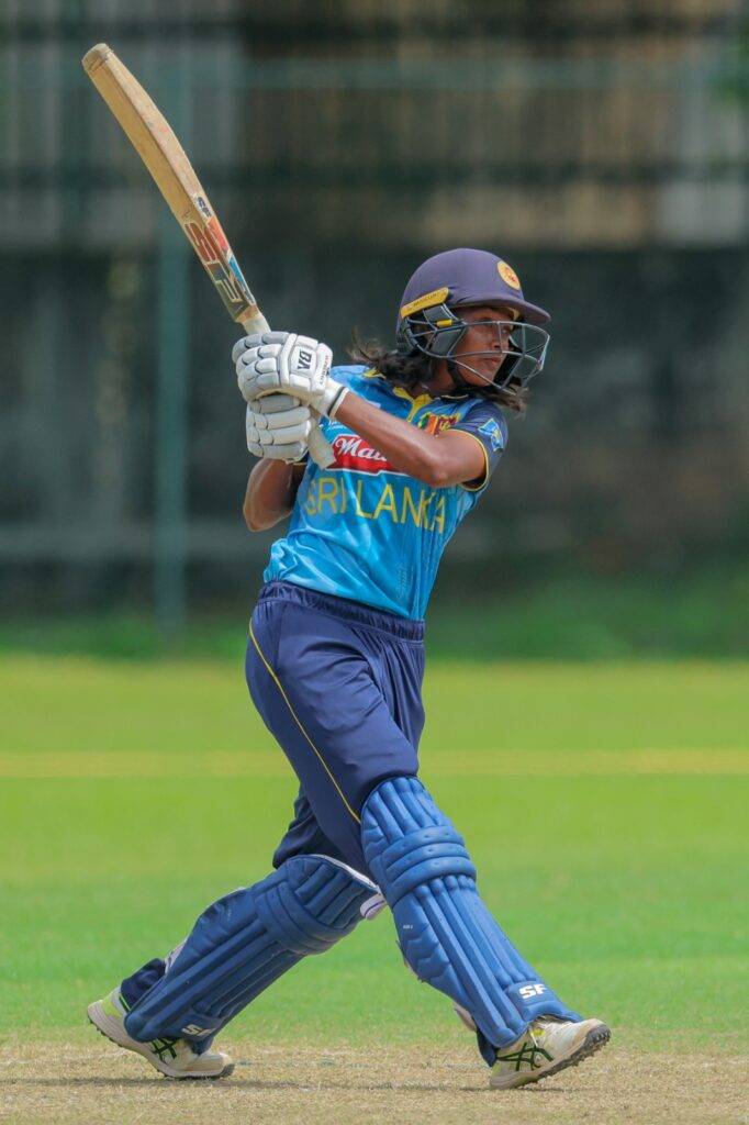 පිතිකරු නාමාවලියේ උසස්වීමක් ලැබ අංක 4 පිතිකාරිණිය වීමේ භාග්‍යය ලද රශ්මිකා සෙව්වන්දි පන්දු 30 දී ලකුණු 38 ක් ලැබුවේ හතරේ පහර 3 ක් සහ එක් හයේ පහරක් ද සමඟය.ශෂිනි ගිම්හානි පන්දු 14 දී ලකුණු 20 ක් ලබා ගත්තේ එක් හයේ පහරක් එක් හතරේ පහරක් සමඟින්ය.මේ ප්‍රහාරය හමුවේ නොසැලී පන්දු යැවූ නූර් ඩානියා පන්දු ඕවර් 4 ලකුණු 20 නිමා කළේ කඩුලු 3 ක් දවා ගනිමින්ය.