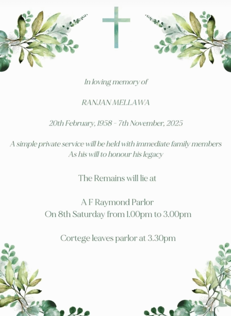 කලක් තිස්සේ අසනීපයෙන් පසුවූ ඒ මහතා ඊයේ (නොවැම්බර් 07) දිනයේදී අභාවප්‍රාප්ත වී ඇත.