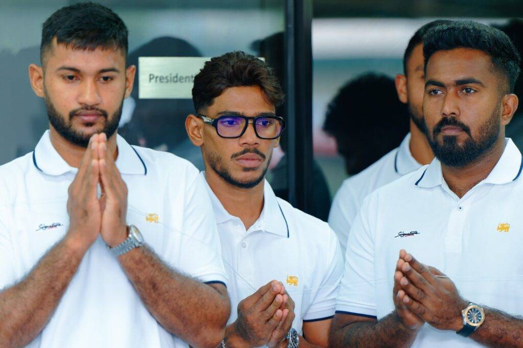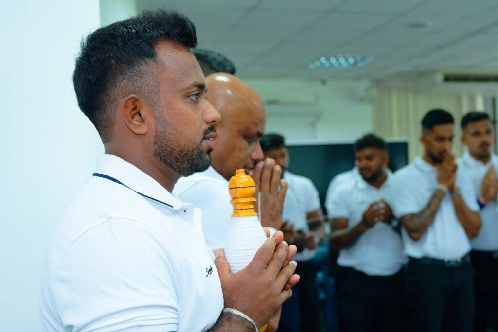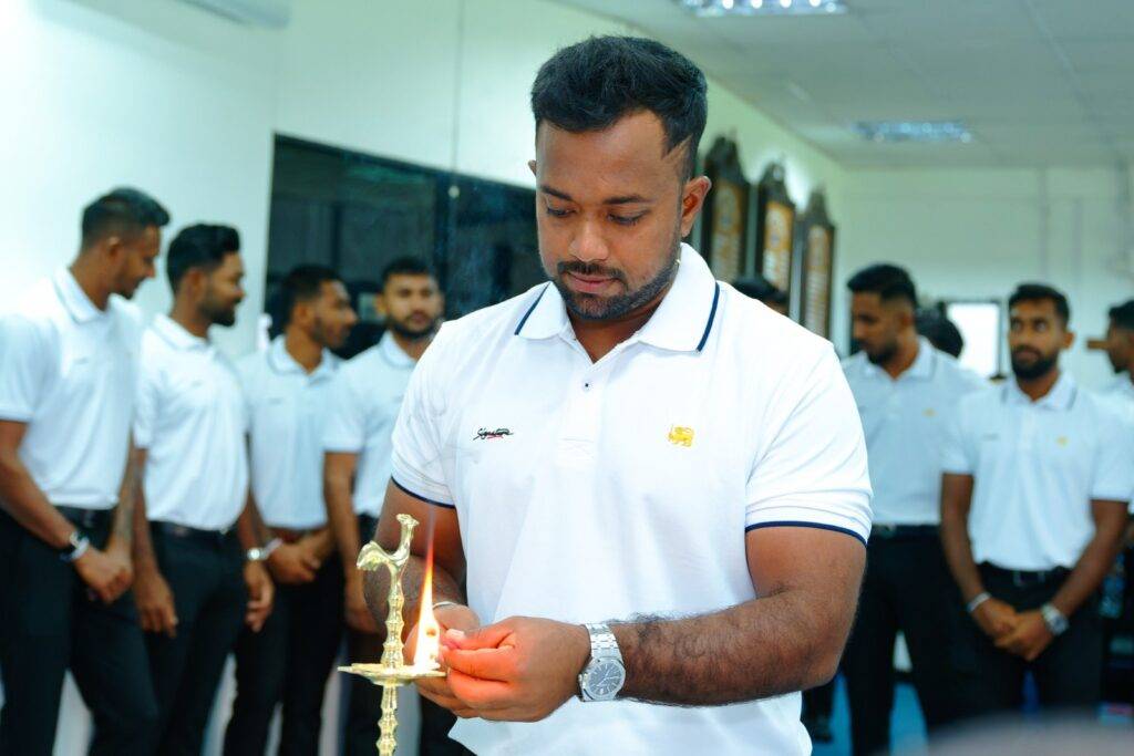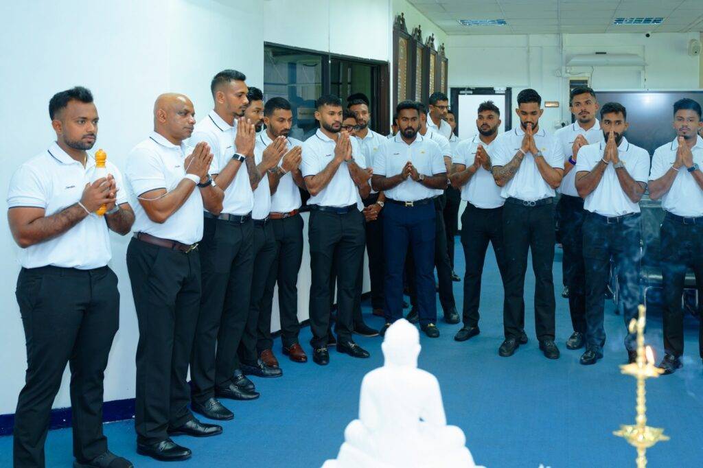 පහතින් දැක්වෙන් ශ්රී ලංකා කණ්ඩායම ශ්රී ලංකා කණ්ඩායම දිවයිනෙන් බැහැර යාමට ප්රථම ශ්රී ලංකා ක්රිකට් ආයතනයේදී සමූහ ඡායාරූපයට පෙනී සිටීම සහ ආගමික වතාවත්වල නිරතවීමය.