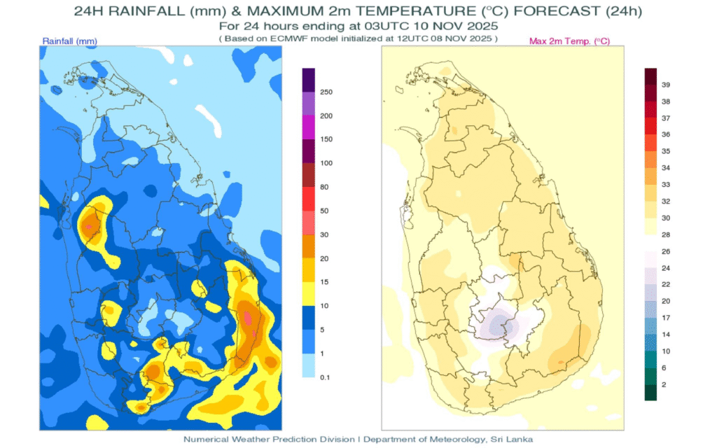 ඌව, දකුණු, සබරගමුව සහ මධ්යම පළාත්වලත් අම්පාර දිස්ත්රික්කයේත් ඇතැම් ස්ථානවලට මි.මී. 75 ට වැඩි තරමක තද වැසි ඇති විය හැක.