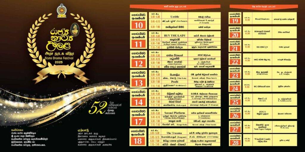 රාජ්ය නාට්ය උළෙලේ අභිමානවත් 52 සැමරුම මෙලෙස සමරනු ලබයි.