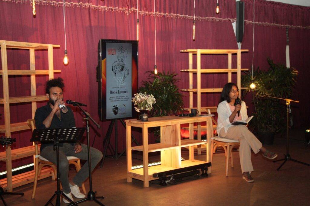 එය බැරිස්ටා කෝපි සමග කාව්යමය සංග්රහයක් අතර සංගීතයෙන් වර්ණවත්වූ ප්රාසාංගික අත්දැකීමක් ද එකතු කර තිබුණි.