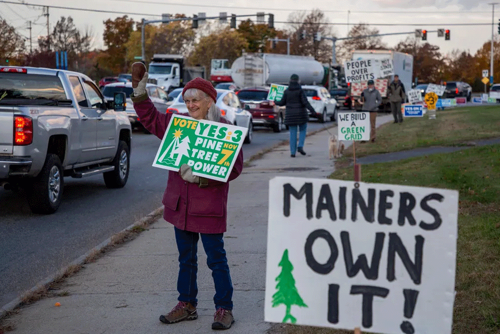 ඉහත සඳහන් කළේ මේන් ප්රාන්තයේ විදුලිබල සැපයුම සිදු කෙරෙන ආකෘතියයි. ජනමතවිචාරණ යෝජනාව මගින් උත්සාහ කළේ CMP හා වර්සන්ට් සමාගමේ වත්කම් මිල දී ගෙන පොදු සමාගමක් පිහිටුවීමටයි. ඒ වෙනුවෙන් මුල් තැන ගත්තේ “අවර් පවර්” සංවිධානයයි.