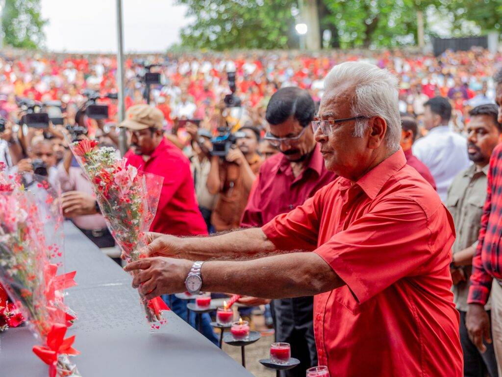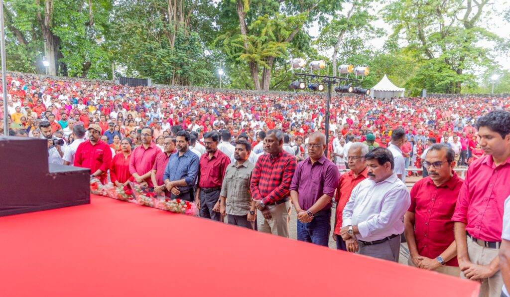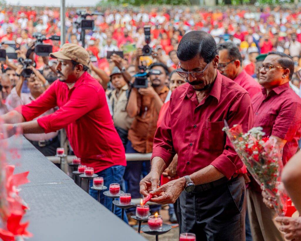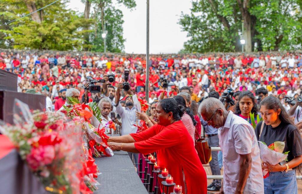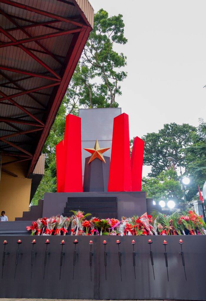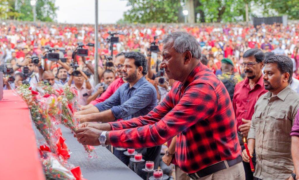 එහිදී ජනතා විමුක්ති පෙරමුණේ නිර්මාතෘ රෝහණ විජේවීර ඇතුළු එම පක්ෂයේ මියගිය පිරිස සිහිගන්වමින් පුෂ්පෝපහාර දැක්වීම සිදු කෙරිණි.