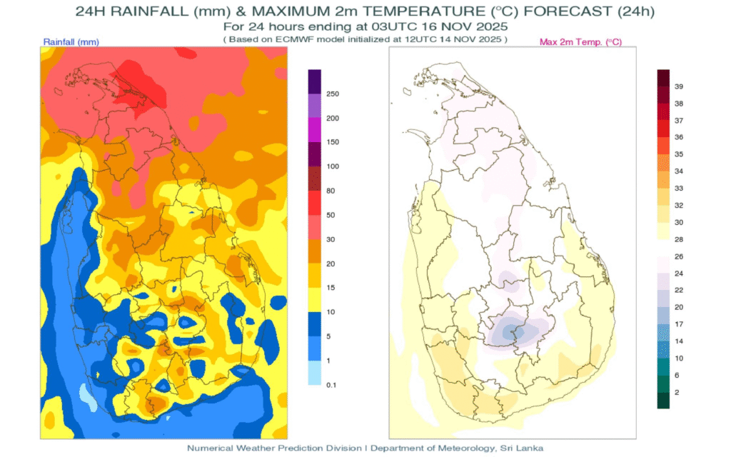 උතුරු සහ නැගෙනහිර පළාත්වල ඇතැම් ස්ථානවලට මි.මී. 100 ක පමණ තද වැසි ඇති විය හැක.