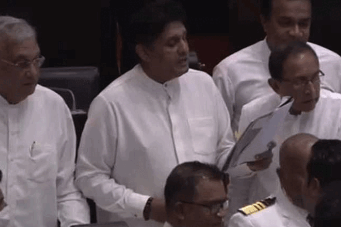 ඒ, විපක්ෂ නායක සජිත් ප්රේමදාස මහතා විසින් සිදුකළ ප්රකාශයට ආණ්ඩු පක්ෂ මන්ත්රීවරුන් පිරිසක් විරෝධය දැක්වීම සමග ය.