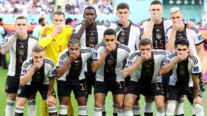 ජර්මානු ක්‍රීඩකයින් ජපානයට එරෙහි ඔවුන්ගේ E කාණ්ඩයේ තරඟයෙහි ඔවුන්ගේ කණ්ඩායම් ඡායාරූපය අතරතුර සියලු දෙනාම අතින් කට වසා ගනිමින් තම ඡායාරූපයට පෙනී සිටි ආකාරය සමාජ මාධ්‍ය කලඹවන ලදී.