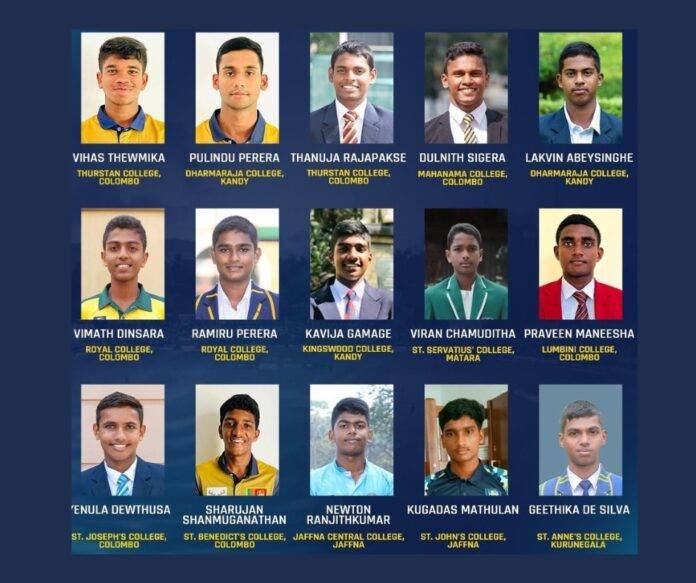 එක්සත් අරාබි එමීර් රාජ්යයේ නොවැම්බර් 29 වන දා ආරම්භවීමට නියමිත අවුරුදු 19 න් පහළ ආසියානු කුසලාන ක්රිකට් තරගාවලියේ දී ශ්රී ලංකාව මෙහෙයවීමේ වගකීම කොළඹ තර්ස්ටන් විද්යාලයේ විහස් තෙව්මිකට පැවරී තිබෙනවා.මේ සමඟ වන ඡායාරූපයේ තිබෙන්නේ එම සංචිතයට ඇතුළත් වන 15 දෙනා සහ ඔවුන් කුමන විද්යාලයක් හරහා කණ්ඩායමට එක් වී සිටිනවාද යන්නයි.
