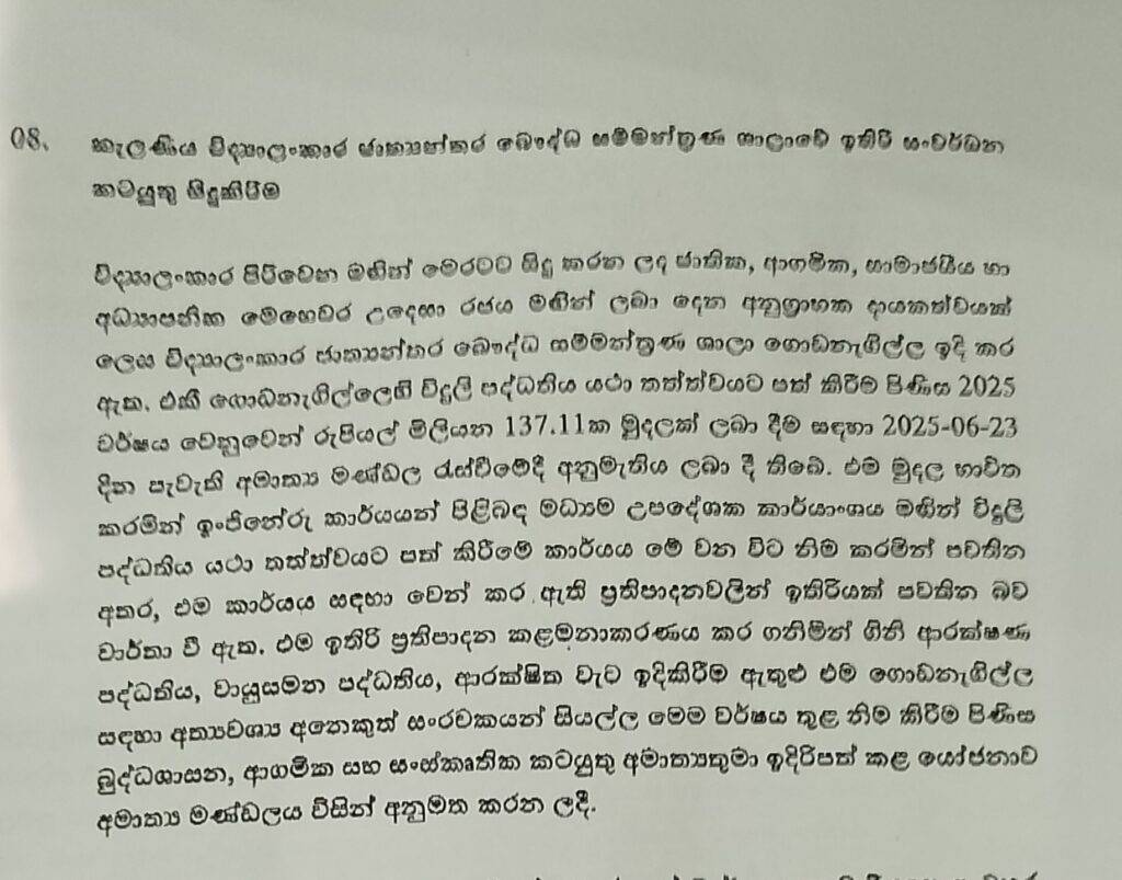 කැළණිය විද්‍යාලංකාර ජාත්‍යන්තර බෞද්ධ සම්මන්ත්‍රණ ශාලාවේ ඉතිරි සංවර්ධන කටයුතු වලට කැබිනට් අනුමැතිය ලැබී ඇත.