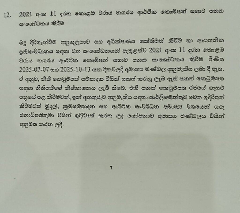 පුවත් කොළඹ වරාය නගරය ගැන තීරණයක්! Date: November 25, 2025 රෂිකා හෙන්නායක නොවැම්බර් 25, කොළඹ LNW : 2021 අංක 11 දරන කොළඹ වරාය නගරය ආර්ථීක කොමිෂන් සභාව පණත සංශෝධනය කිරීම සඳහා අමාත්ය මණ්ඩල අනුමැතිය හිමිව ඇත . TagsLanka News WebPORT CITYSri Lankaකැබිනට් අනුමැතිය Previous articleරජ පවුලේ රෙදි ලෙෆ්ට් වෙයි! මේගන් සහ Ushuaia ගැන කතාවක් කරළියට!Next articleනොපෙණෙන දෑසෙන් පෙනෙන දෑසට පාඩමක් Share post: FacebookTwitterPinterestWhatsApp Popular වසර 10,000කට පසු සක්රීය වූ ඉතියෝපියාවේ Hayli Gubbi හේතුවෙන් ගුවන් ගමන් රැසක් අඬාල වෙයි! සේවක අර්ථසාධක අරමුදලට අලුත් වැඩක්! විභාග අක්රමිකතාවක් පිළිබදව තොරතුරක්! නවීණ තාක්ෂණය යටතේ රූපවාහිනී නරඹන්නන්ට උසස් තත්වයේ ඩිජිටල් අත්දැකීමක්! නොපෙණෙන දෑසෙන් පෙනෙන දෑසට පාඩමක් More like thisRelated වසර 10,000කට පසු සක්රීය වූ ඉතියෝපියාවේ Hayli Gubbi හේතුවෙන් ගුවන් ගමන් රැසක් අඬාල වෙයි! Radhika - November 25, 2025 සටහන – පුලී නොවැම්බර් 25, කොළඹ (LNW): වසර 10,000කට පසු... සේවක අර්ථසාධක අරමුදලට අලුත් වැඩක්! ASK - November 25, 2025 කොළඹ LNW:සේවක අර්ථසාධක අරමුදල සම්බන්ධයෙන් නව ඩිජිටල්කරණ පද්ධතියක් හඳුන්වා... විභාග අක්රමිකතාවක් පිළිබදව තොරතුරක්! Rashika Sandamali - November 25, 2025 රෂිකා හෙන්නායක නොවැම්බර් 25, කොළඹ LNW: අද (25) පැවති කැබිනට්... නවීණ තාක්ෂණය යටතේ රූපවාහිනී නරඹන්නන්ට උසස් තත්වයේ ඩිජිටල් අත්දැකීමක්! Rashika Sandamali - November 25, 2025 රෂිකා හෙන්නායක නොවැම්බර් 25, කොළඹ LNW: භෞමික ප්රතිසම රූපවාහිනී නාලිකා...