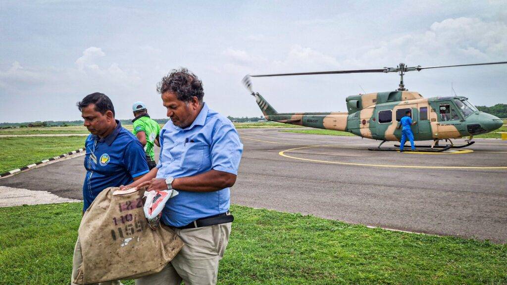 නොවැම්බර් 16 වන දා තිබුණු අයහපත් කාලගුණ තත්ත්වය නිසා උතුරු පලාතේ ඩෙල්ෆ් දූපතේ පිහිටා ඇති විභාග මධ්‍යස්ථානයේ සිට අ.පො.ස උසස්පෙළ විභාගයේ පිළිතුරු පත්‍ර ශ්‍රි ලංකා ගුවන් හමුදාවට අයත් බෙල් 212 වර්ගයේ හෙලිකොප්ටර් යානය මගින් රැඟෙන ආ අවස්ථාව මෙම ඡායාරූපවලින් දැක්වෙනවා.