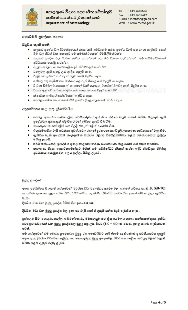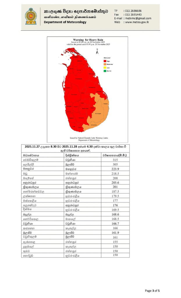 ආපදා කළමනාකරණ මධ්‍යස්ථානය අද (28) අලුයම 04.00 ට නිකුත් කළ විශේෂ තත්ව වාර්තාව