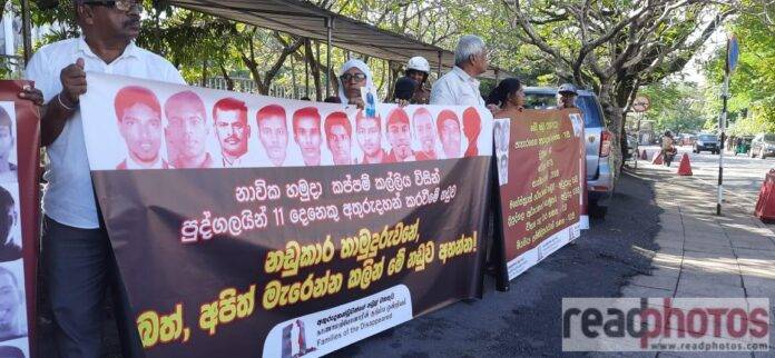 ඒ 2008 දී එකොළොස් දෙනෙකු නාවික හමුදා කප්පම් කල්ලිය විසින් පැහැරගෙන ගොස් අතුරුදහන් කිරීමේ සිදුවීම්ට අදාළ නඩුව විභාග කරන ලෙස බල කරමිනි.