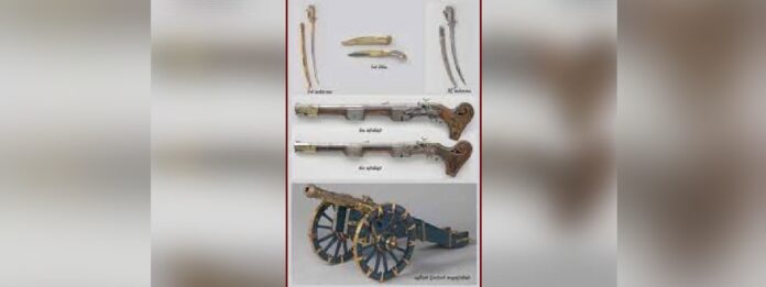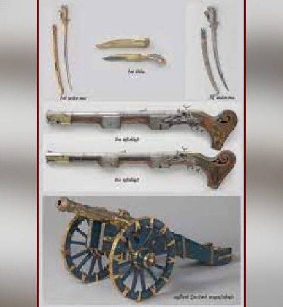 වර්ෂ 1756 දී ආක්රමණික ලන්දේසීන් විසින් මහනුවර රජ මාළිගාවට පහර දී පැහැර ගත් මඟුල් කඩුව, ලෙව්කේ දිසාවගේ කාලතුවක්කුව,