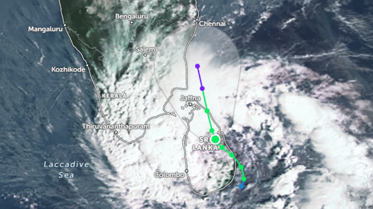 කාලගුණවිද්යා දෙපාර්තමේන්තුව නිවේදනය කරමින් පවසන්නේ, “දිට්වා” Ditwah සුළිකුණාටුව කන්කසන්තුරය සිට 210 km ක් ඊසාන දෙසින්, අක්ෂාංශ 11.4°N සහ දේශාංශ 80.6°E ආසන්නයේ කේන්ද්ර ගතව වී ඇති අතර මෙම පද්ධතිය තවදුරටත් දිවයිනෙන් ඉවතට, උතුරු දෙසට ගමන් කරනු ඇති බවයි.