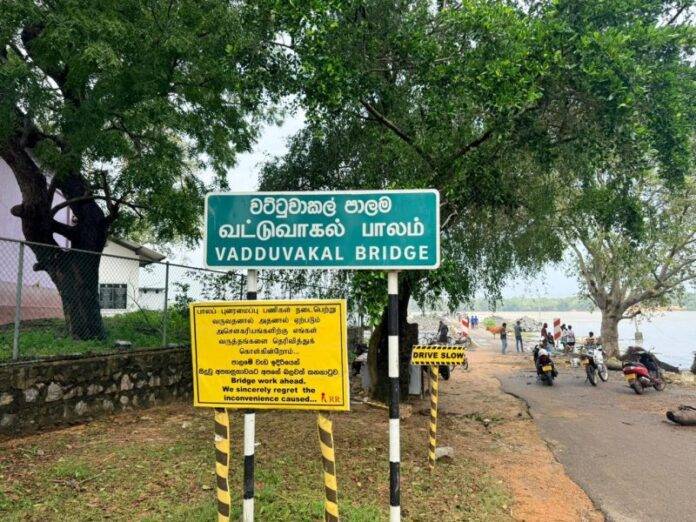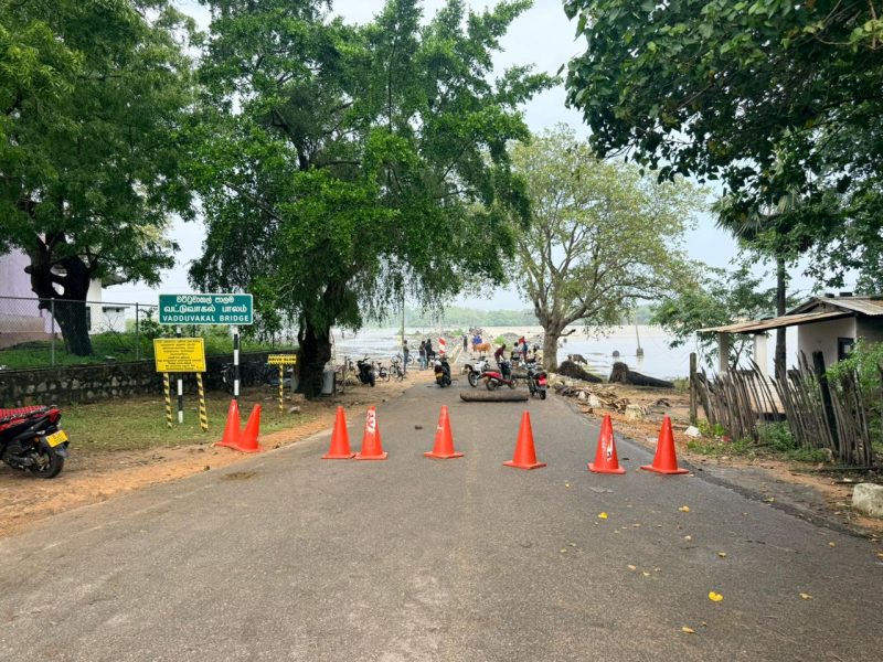 නන්දිකඩාල් කලපුව හරහා වැටී ඇති මුලතිව් නගරයට පිවිසෙන ප්‍රධාන පිවිසුම් මාර්ගය අවහිර වේ..