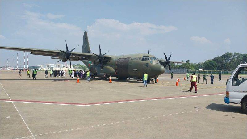 බංගලදේශ ගුවන් හමුදාවට අයත් C-130 වර්ගයේ භාණ්ඩ ප්රවාහන ගුවන් යානයක් වූ මෙය අද දින(03) පස්වරු 01.00 ට බංගලදේශයේ ඩකා නුවර සිට කටුනායක ගුවන් තොටුපොළ වෙත පැමිණ තිබුණි.