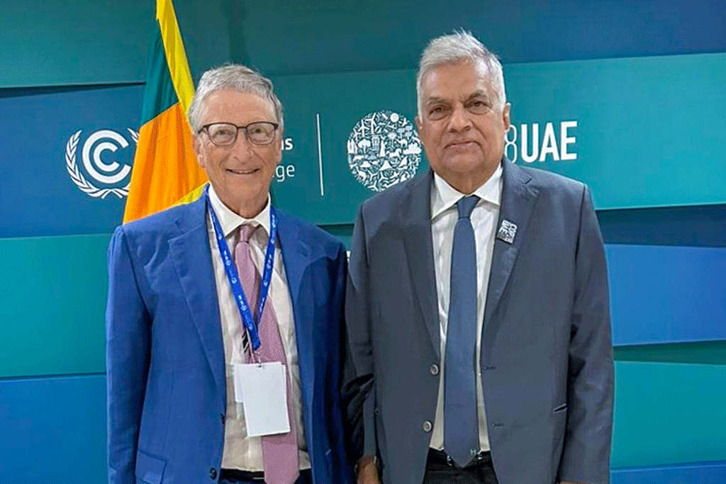 ඩුබායි හි පැවැත්වෙන COP 28 සමුළුවට සමගාමීව ජනාධිපති රනිල් වික්රමසිංහ මහතා සහ බිල් සහ මෙලින්ඩා ගේට්ස් පදනමේ (BMGF) සම සභාපති බිල් ගේට්ස් (Bill Gates) මහතා අතර හමුවක් ඊයේ (03) සිදු වූ අතර දේශගුණික විපර්යාස අවම කර ගැනීමේ ගෝලීය අභියෝගය සහ නිවර්තන කලාපය තුළ ශ්රී ලංකාවේ භූමිකාව වැඩිදියුණු කිරීම පිළිබඳ මෙහිදී දීර්ඝ ලෙස සාකච්ඡා කෙරිණි.