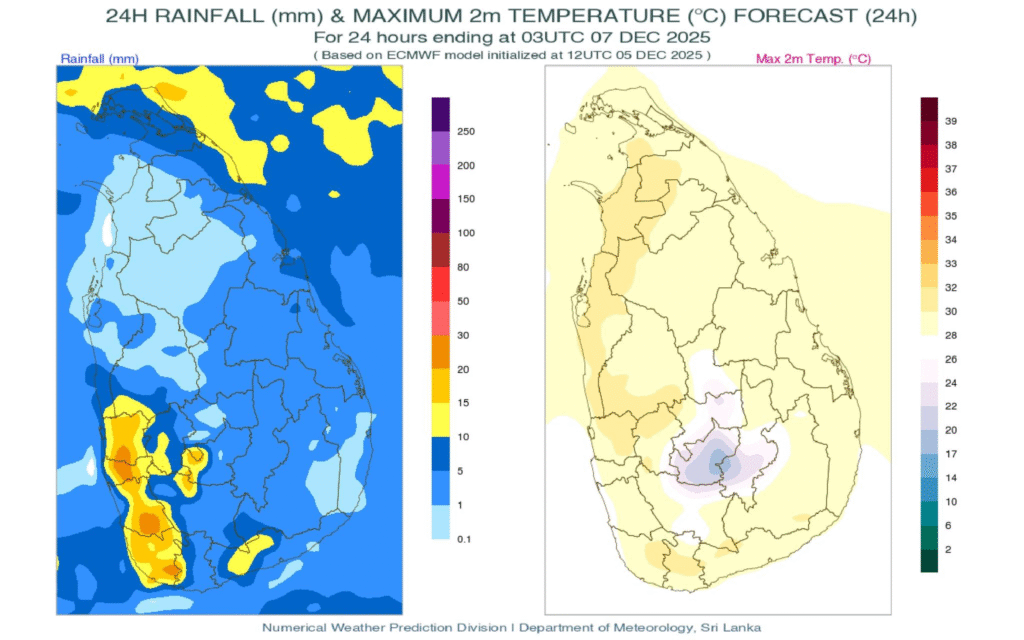 ඒ අනුව, අද (දෙසැම්බර් 06) දිනයේදී උතුරු, උතුරු-මැද, නැගෙනහිර සහ ඌව පළාත්වලත් මාතලේ දිස්ත්රික්කයෙත් වැසි වාර කිහිපයක් ඇති වේ.