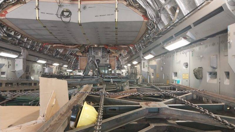 මෙම ගුවන් යානය තුළ අඩි 110 ක් දිගැති , මෙට්රික් ටොන් 65 ක් බරැති බේලි පාළමක්, ජේ.සී.බී.බැකෝ යන්ත්රයක් සහ ඉන්දීය යුධ හමුදාවේ ඉංජිනේරු බළකායේ ඉංජිනේරුවරුන් 13 දෙනෙකු ද පැමිණ ඇත.