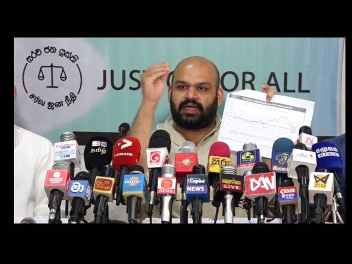 ඒ, අද (07) ‘සර්ව ජන යුක්තිය” විසින් 2023 අයවැය වාර්තාව ගැන පැවති මාධ්‍ය හමුවේදීය.