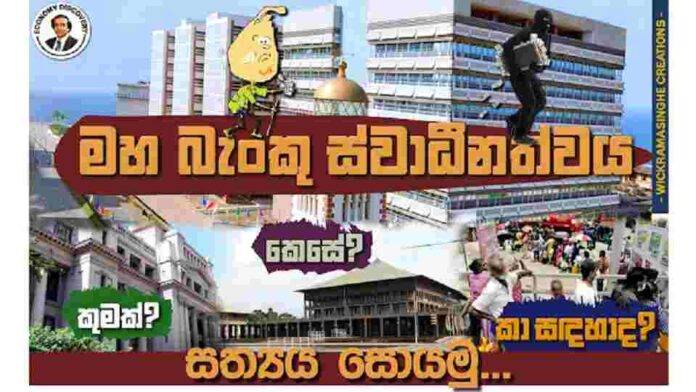 පසු ගිය දිනක මුදල් රාජ්ය ඇමති වරයකු විසින් මහ බැංකුව ස්වාධීන කිරීම සඳහා අවශ්ය නීති පාර්ලිමේන්තුවට ඉදිරිපත් කරන බවට ප්රකාශ කළ බව මධ්යයෙහි වාර්තා විය.