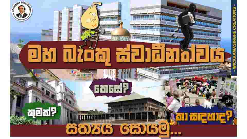 එබැවින්, වත්මන් මහ බැංකු අධිපති හෝ මුදල් මණ්ඩලයට අවශ්ය පරිදි මහ බැංකුවට නව ස්වාධීනත්වයක් දීමේ යෝජනාව ගෙන ඒමට පෙර, මුදල් නීති පනත, ජෝන් එක්ස්ටර් වාර්තාව, මුදල් නීති පනත පිළිබඳ පාර්ලිමේන්තු විවාදය සහ ලෝකයේ මහ බැංකුවල ඉතිහාසය අධ්යයනය කරන ලෙස අදාළ ප්රතිපත්ති සම්පාදකයන්ට යෝජනා කරමි.