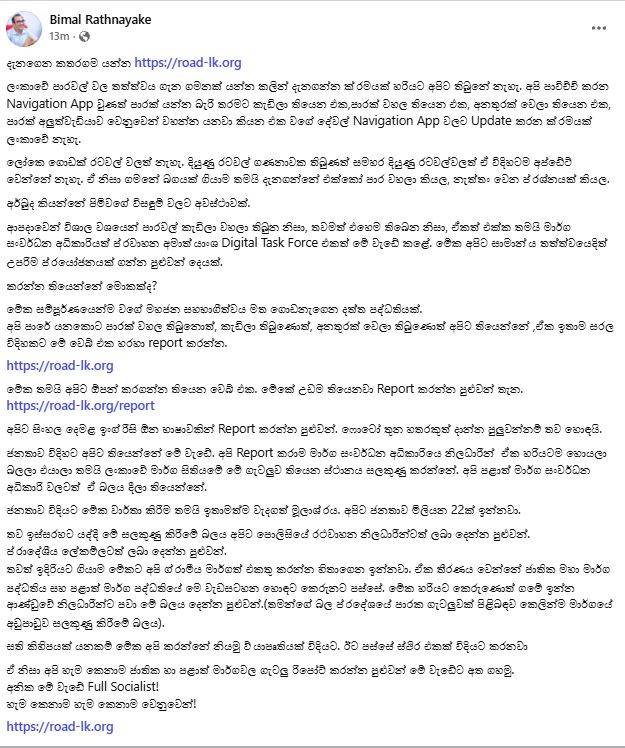 ඒ අනුව මාර්ගයක් සම්බන්ධයෙන් වන අනතුරක්, වසා තැබීමක් වැනි තොරතුරු මෙම https://road-lk.org වෙබ් අඩවියට ඇතුලත් කළ හැකියි.